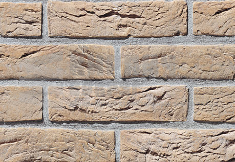 Жёлтый кирпич с мелким песком даёт облицовочной поверхности сходство с облицовкой из кирпича без песка, создавая эффект кирпича вырезанного в камне.
